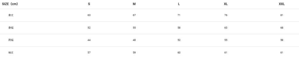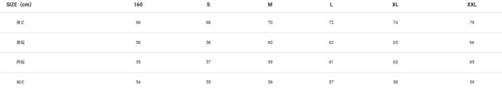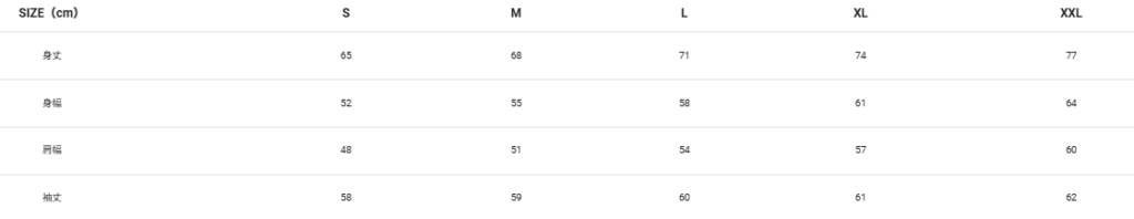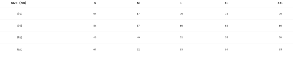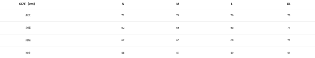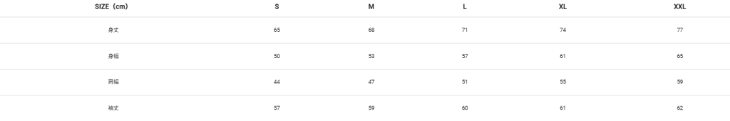 10オンス デザインパーカーのサイズ表  スタンダードなシルエットで程よい厚みのある着回しやすいスウェット。