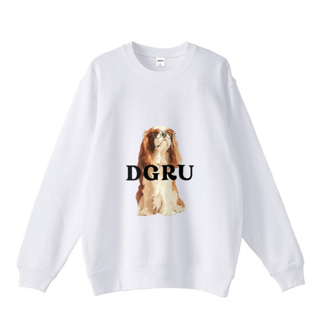 キャバリアの気品と愛らしさをDGRUならではのグラフィックで表現した「Cavalier キャバリア スウェット」と「キャバリア デザインスウェット」。しっかりとした生地厚で、秋冬のメインアイテムとして活躍します。「Cavalier」のロゴとキャバリアのイラストが絶妙にミックスされたデザインは、ファッション性の高さと愛犬への深い愛情を両立。