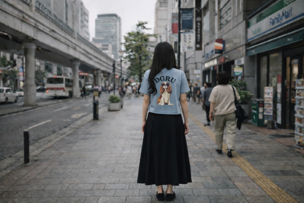 「ゆるっと羽織って、きちんと映える」DGRUの「キャバリア バックデザインカーディガン」。綿の天竺素材を使用したルーズなシルエットは、適度な抜け感を演出し、リラックスしながらもこなれた印象を与えます。最大の魅力は、背面に施されたキャバリアの優雅なデザイン。歩くたびに揺れるカーディガンが、さりげなく愛犬への愛情をアピールします。